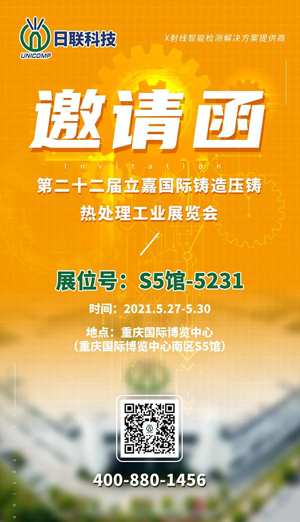第 22 屆立嘉國際鑄造壓鑄熱處理工業(yè)展將于 2021年5月27至30日在重慶國際博覽中心舉行。日聯(lián)科技位于S5館5231展位,此次將展出UNC系列X射線智能檢測設(shè)備。