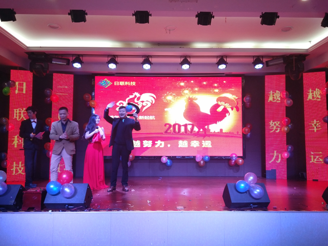 日聯(lián)科技(深圳)公司于2017年1月13日在東海明珠大酒店召開2016年度表彰大會暨2017年春節(jié)聯(lián)歡晚會,特邀參會的有日聯(lián)攜手合作伙伴、供應商、代理商以及深圳日聯(lián)全體同仁。日聯(lián)科技董事長劉駿和集團總經理倪文俊先生對前來參加會議暨晚會的同仁表示祝賀與感謝。