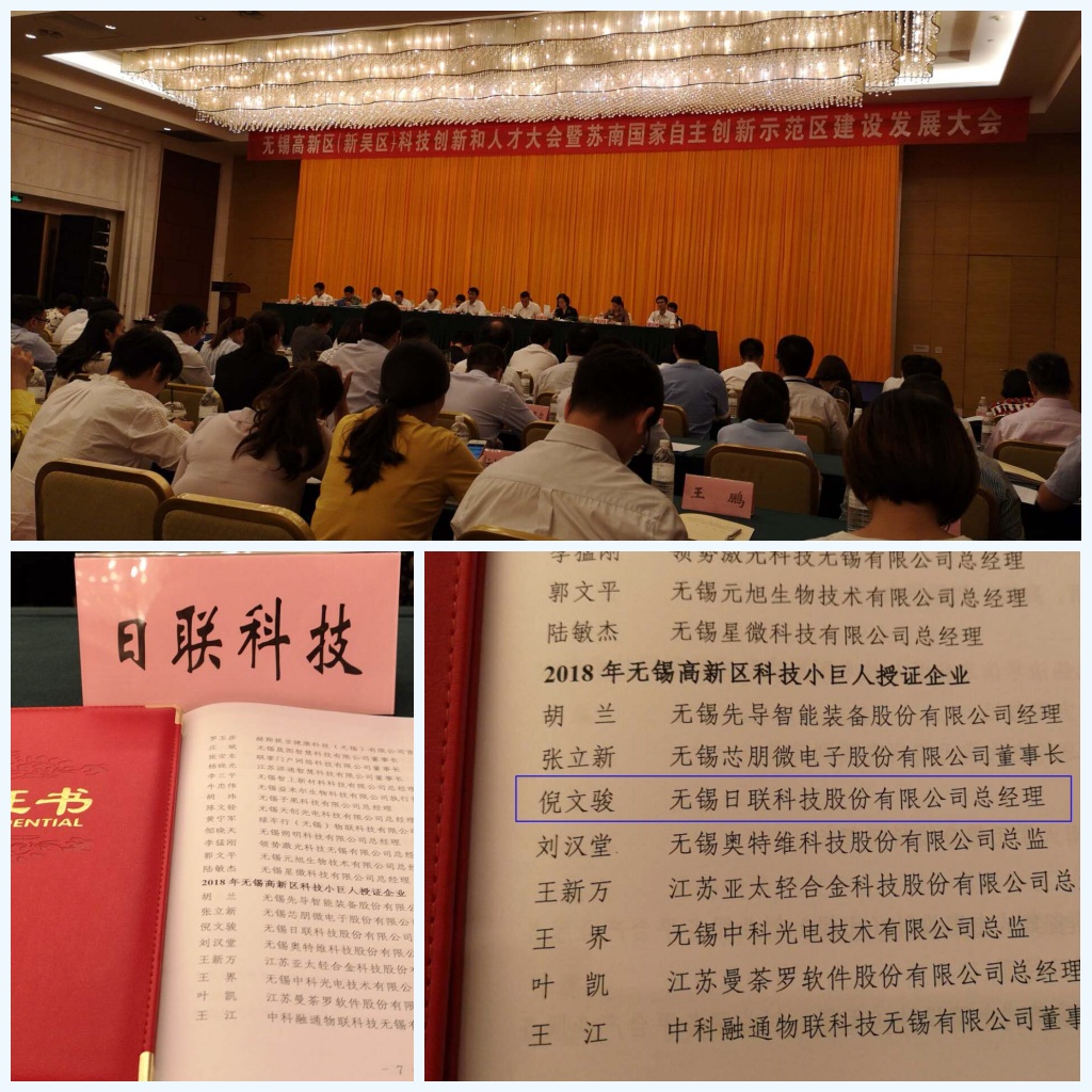 2018年9月27日下午,無錫高新區(qū)(新吳區(qū))科技創(chuàng)新和人才大會暨蘇南國家自主創(chuàng)新示范區(qū)建設(shè)發(fā)展大會在新區(qū)鉑爾曼酒店召開,此次會議集結(jié)了包括日聯(lián)科技在內(nèi)的一批自主創(chuàng)新能力強(qiáng)、重點(diǎn)聚焦“高精特新”等專業(yè)產(chǎn)品與細(xì)分領(lǐng)域的科技型企業(yè)。